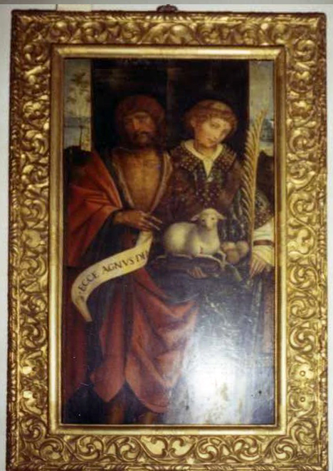 Ancona, olio su tavola, raffigurante “Pietà tra san Francesco d’Assisi, san Bernardino da Siena, sant’Antonio da Padova e santa Chiara” o “Compianto sul Cristo morto”.