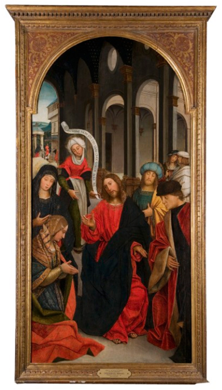 Olio su tavola (153,67 x 76,2 cm), raffigura “Cristo nella casa di Marta e Maria Maddalena”, 1505-1515